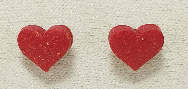 D’un rouge profond légèrement texturé, chaque cœur présente de subtiles variations et de délicats petits éclats naturels qui rendent chaque paire unique. Leur finition mate et leur forme arrondie leur donnent un aspect à la fois minimaliste et chaleureux.