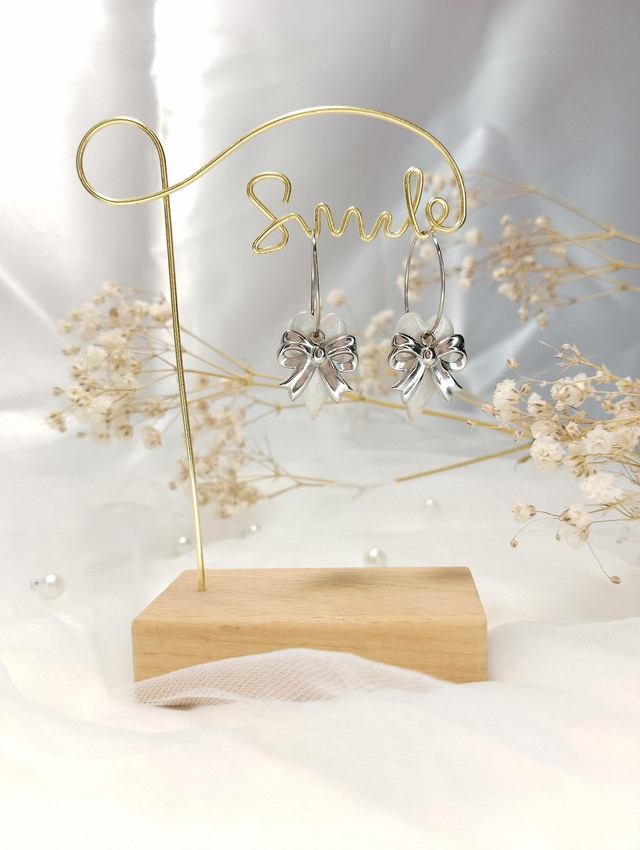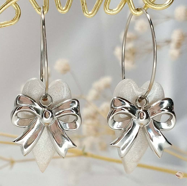 Laissez-vous séduire par ces adorables boucles d'oreilles qui allient la douceur romantique d'un cœur nacré à l'élégance d'un nœud argenté. Confectionnées avec soin, elles apporteront une touche de raffinement à toutes vos tenues.