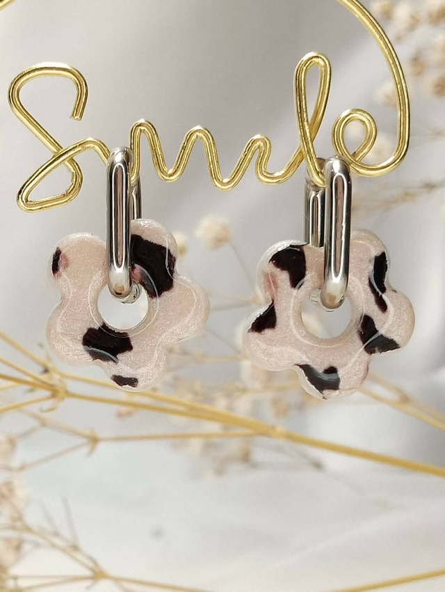 Confectionnées en pâte polymère légère avec un motif léopard unique, ces petites fleurs sont montées sur des anneaux carrés argentés en acier inoxydable 316L, pour un confort durable et un style affirmé. Parfaites pour une touche d'originalité au quotidien.