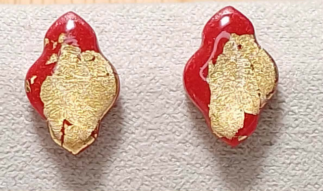 Ajoutez une touche d'élégance et d'originalité à votre look avec ces superbes boucles d'oreilles! Inspirées par l'esthétique Art Déco, ces boucles d'oreilles présentent une forme élégante et organique, rehaussée d'un contraste saisissant entre le rouge vif et la feuille d'or.