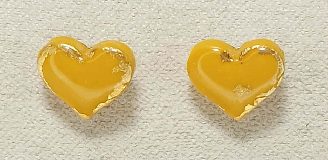 Craquez pour ces adorables boucles d'oreilles en forme de cœur de couleur moutarde.
